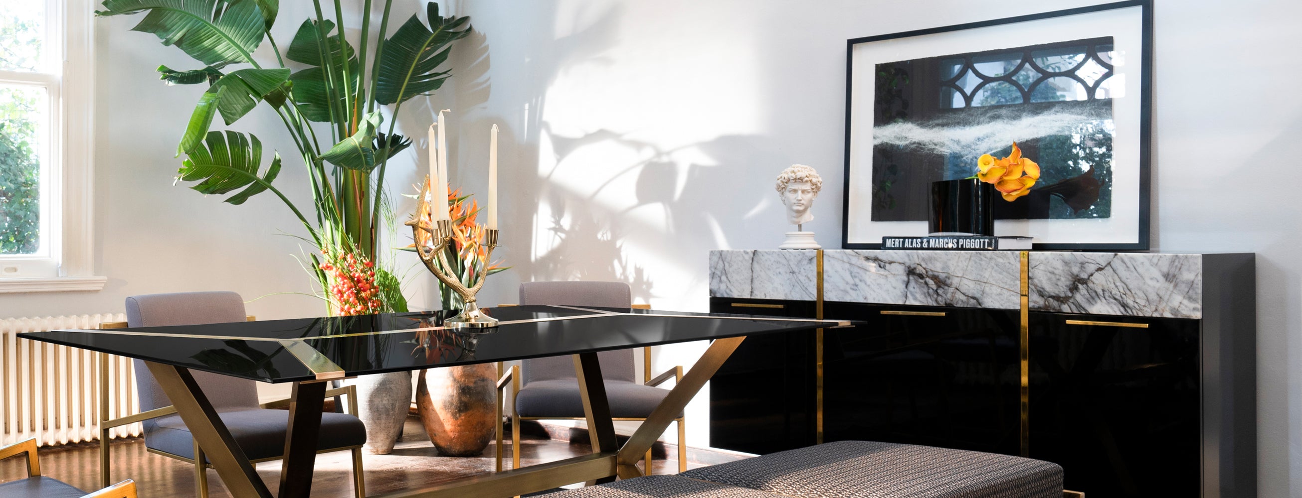Inspired by the columns that once held the most magnificent buildings standing, RECALLED Table , the most important and magnificent part of the RECALLED series, is complemented by PAPILLONNE Chairs that carry all the traces of contemporary design. GATE Mirror completes the connection between the past and the present.