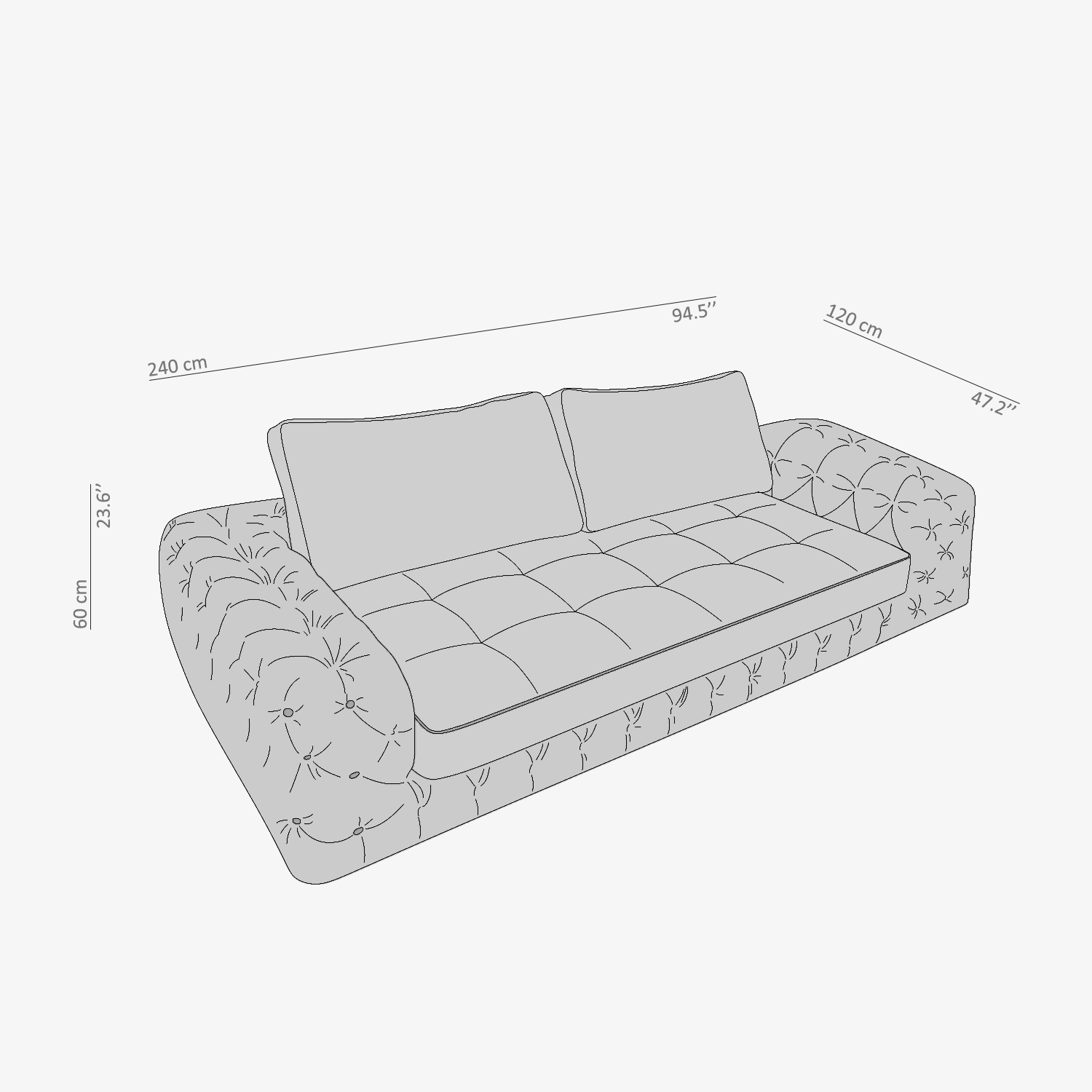 Sırt ve kolçak bölümlerinde özenle uygulanan kapitone dikişler, geleneksel tekniklerin çağdaş bir yüzle yeniden hayat bulduğu bir denge yaratır. Koltuğun seyyar sırt minderleri, düz ve geniş oturum alanı ile konforu ön plana çıkarır. Bu sayede hem gündelik kullanım hem de uzun dinlenmeler için ideal bir çözüm sunar.