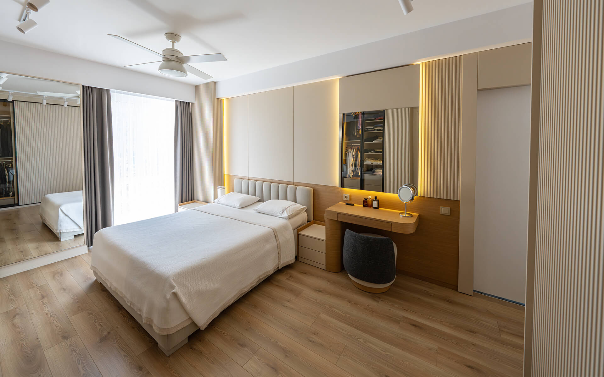 İstanbul Bostancı’da yer alan 3+1 apartman dairesinin tüm sabit ve hareketli mobilya uygulamasını, Tekin Sever Mimarlık ofisi iş birliğinde üstlendik.