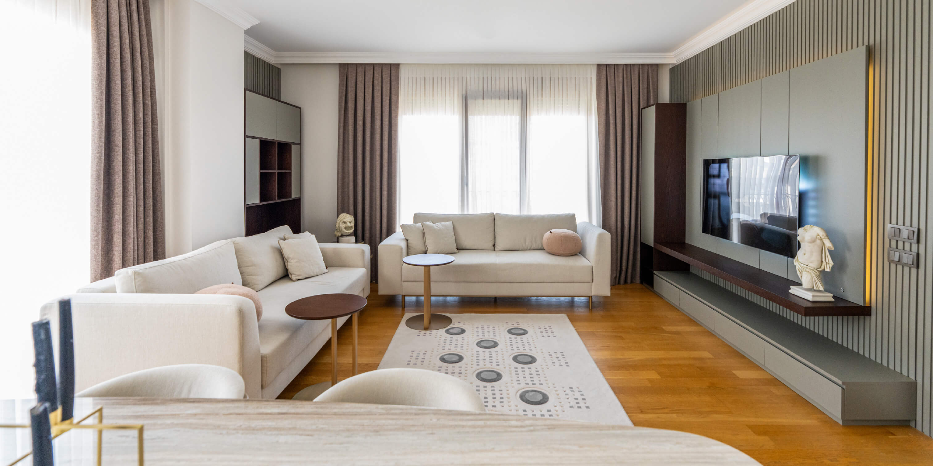 İstanbul Bostancı’da yer alan 3+1 apartman dairesinin tüm sabit ve hareketli mobilya uygulamasını, Tekin Sever Mimarlık ofisi iş birliğinde üstlendik.