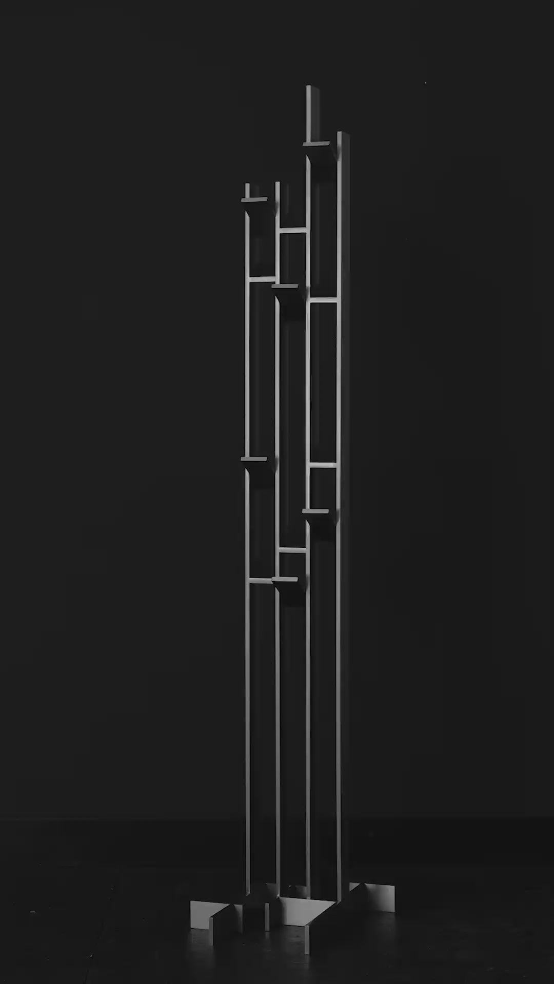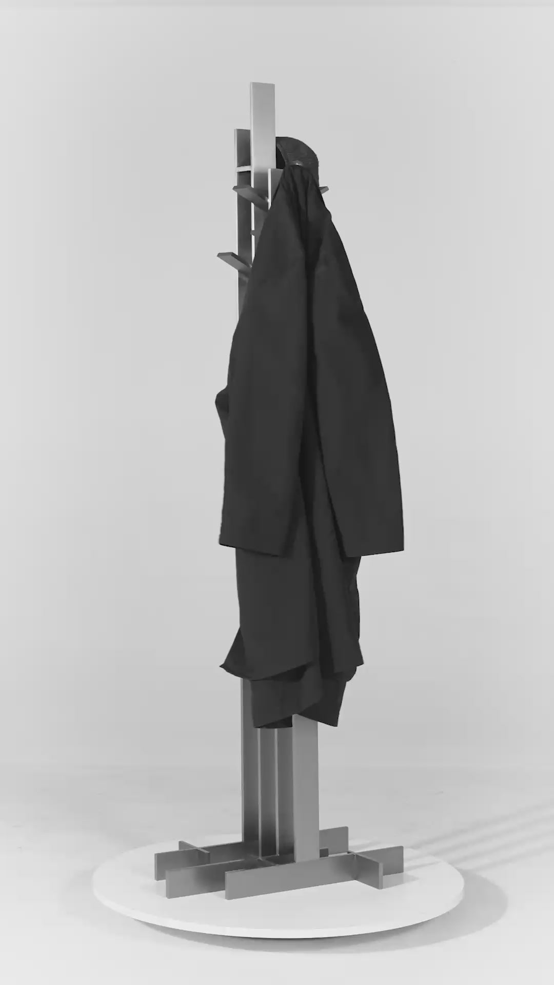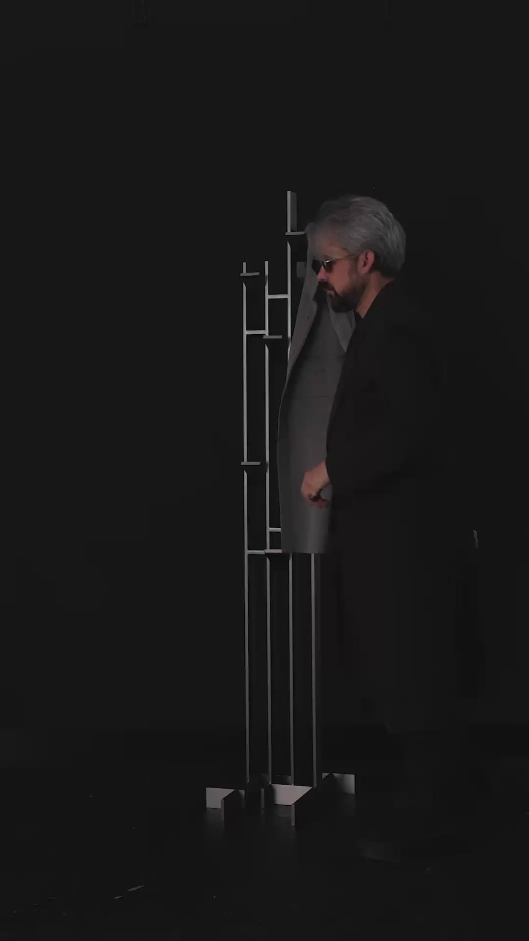 Keskin hatlara sahip metal gövdesi, brutalist estetiği modern yorumlarla birleştirirken, 12 ayrı asma bölümü giysilerden aksesuarlara, şemsiyelerden çantalara kadar geniş bir kullanım alanı sunar.