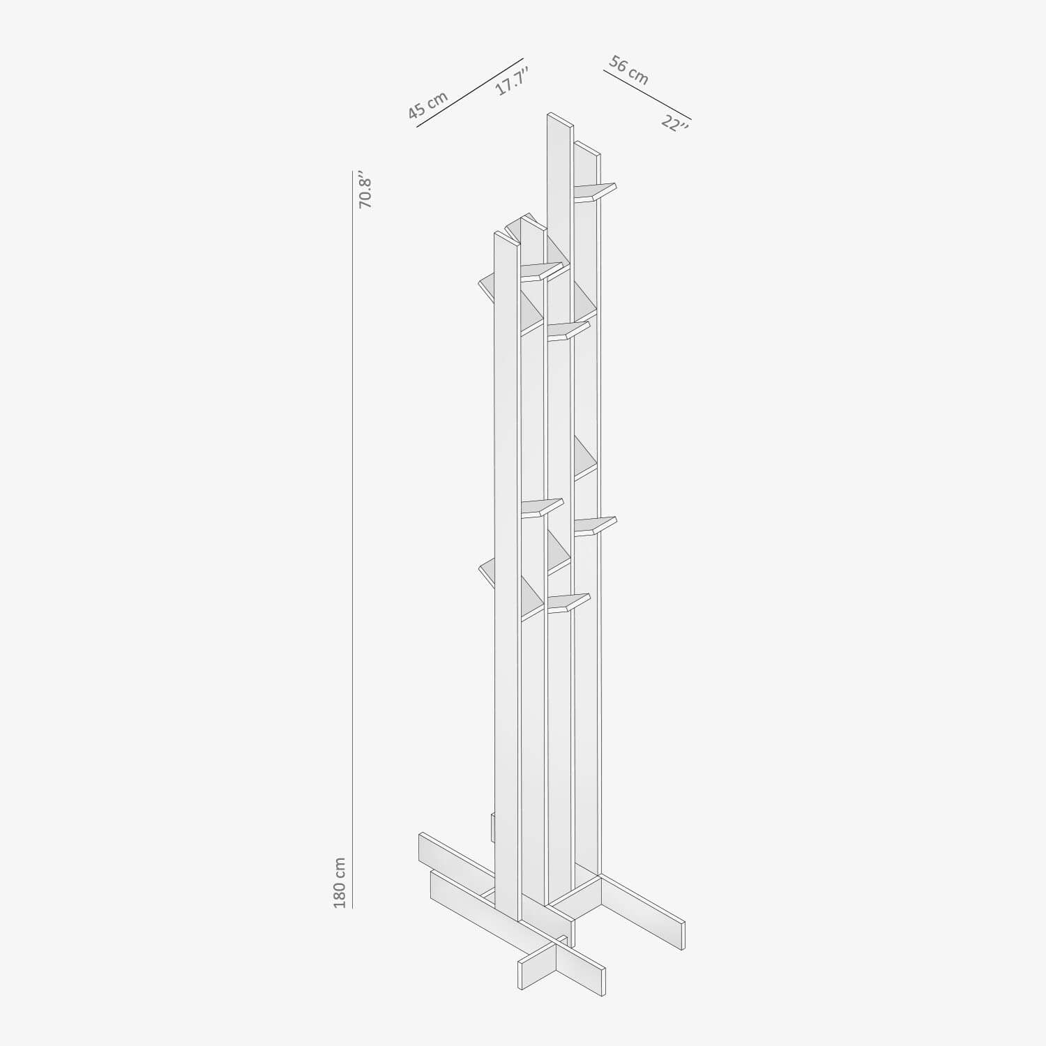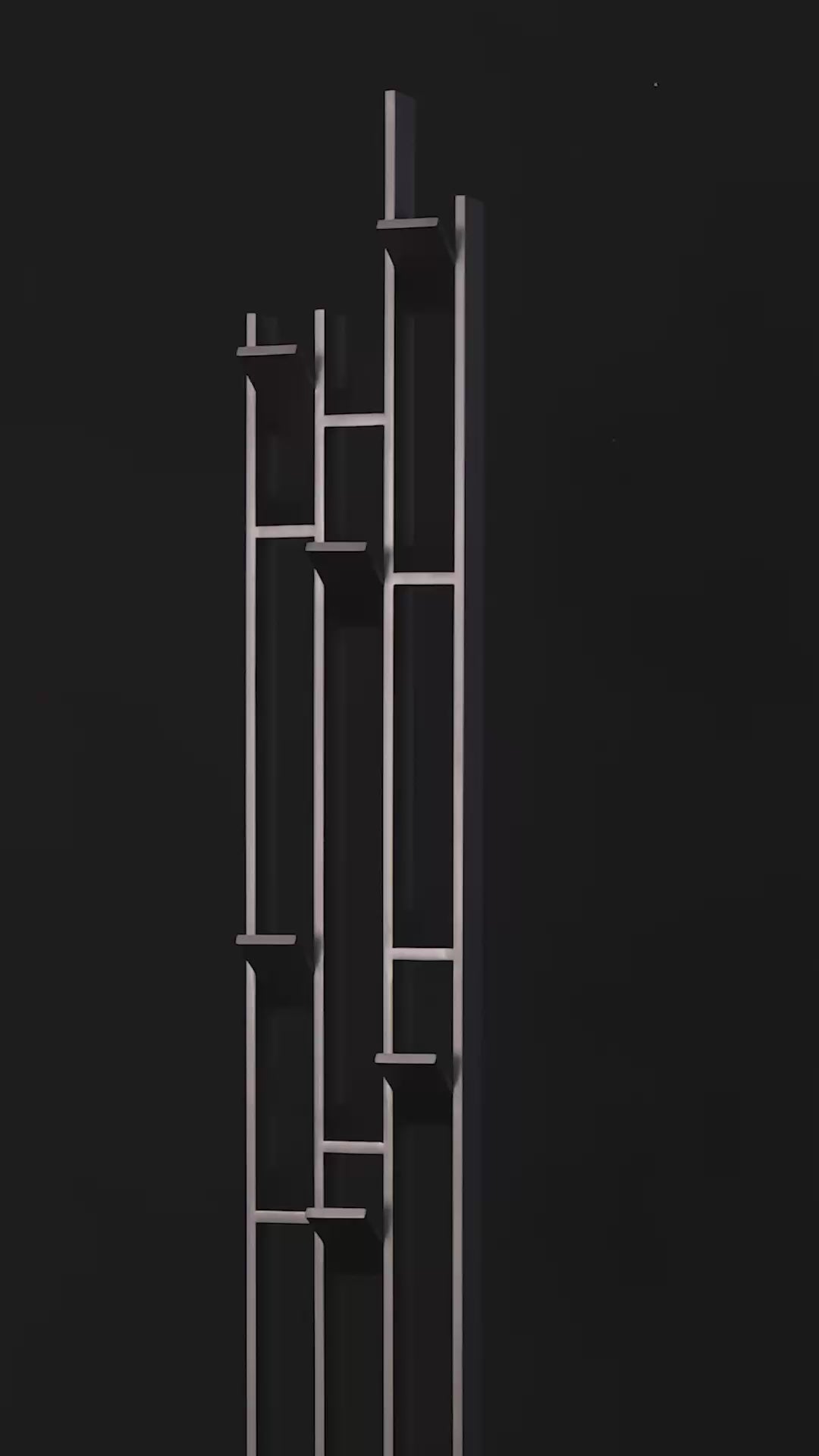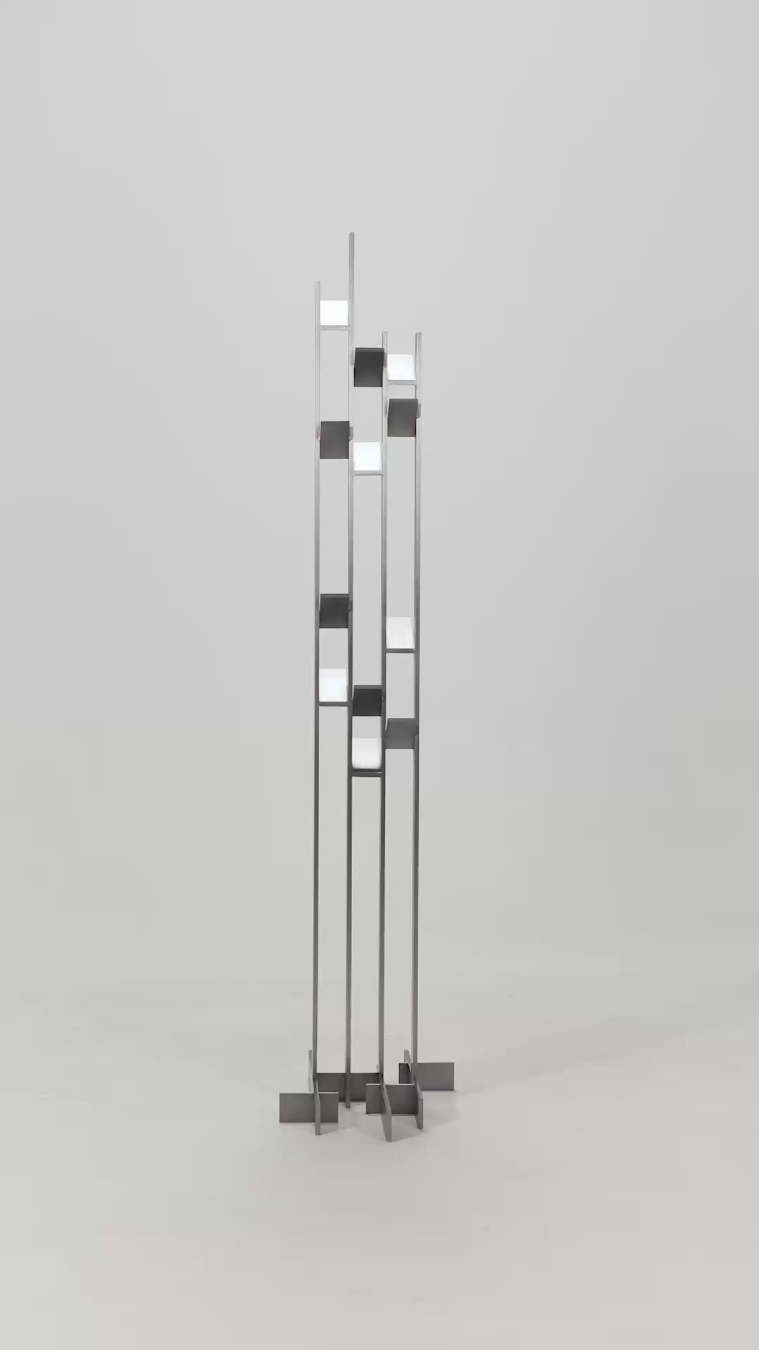Keskin hatlara sahip metal gövdesi, brutalist estetiği modern yorumlarla birleştirirken, 12 ayrı asma bölümü giysilerden aksesuarlara, şemsiyelerden çantalara kadar geniş bir kullanım alanı sunar.