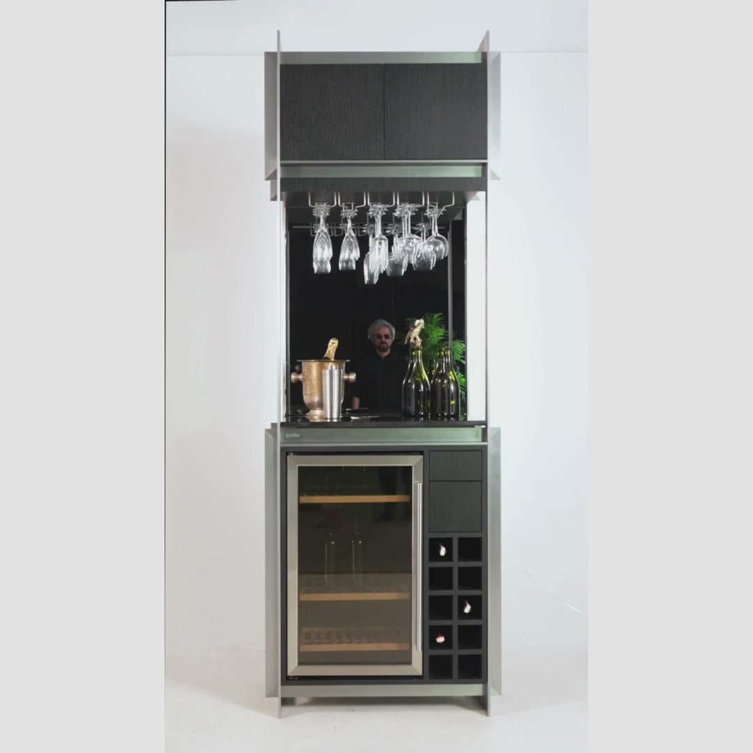 Cam, metal, mermer ve ahşabın dengeli birlikteliği sayesinde Burēdo, yalnızca bir içki dolabı değil; bulunduğu ortamda mimari bir odak, stil sahibi bir yaşam ünitesidir.