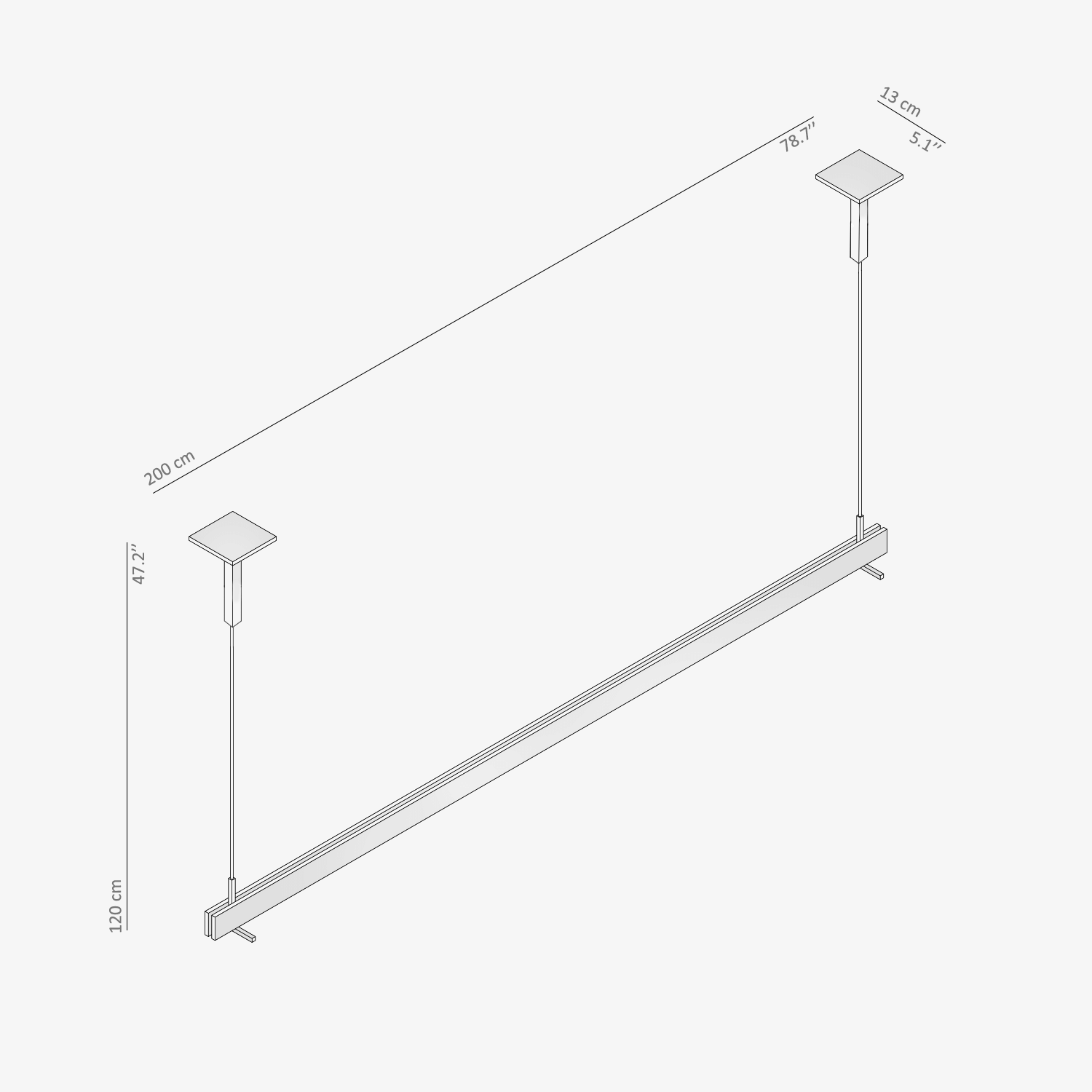 200 cm genişliğindeki metal gövdesi ve gün ışığı tonundaki LED ışık kaynağı, özellikle yüksek tavanlı alanlarda güçlü bir estetik vurgu oluşturur.