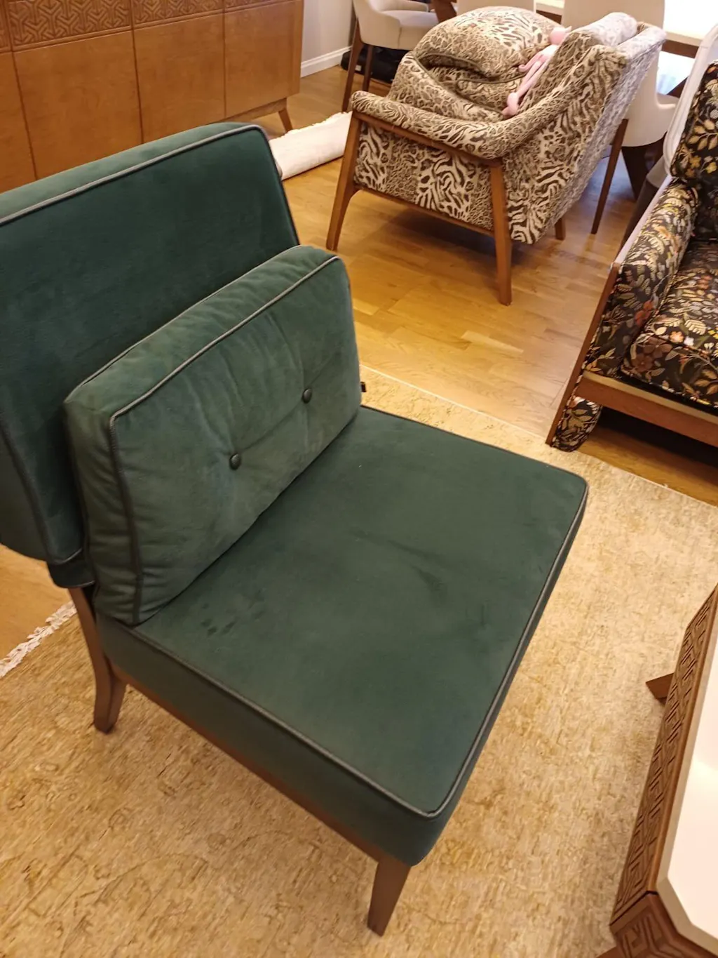 Zengin işçiliği ve ince düşünülmüş detaylarıyla Gawain Berjer, yalnızca bir oturma elemanı değil, bulunduğu mekâna kimlik kazandıran bir tasarım.