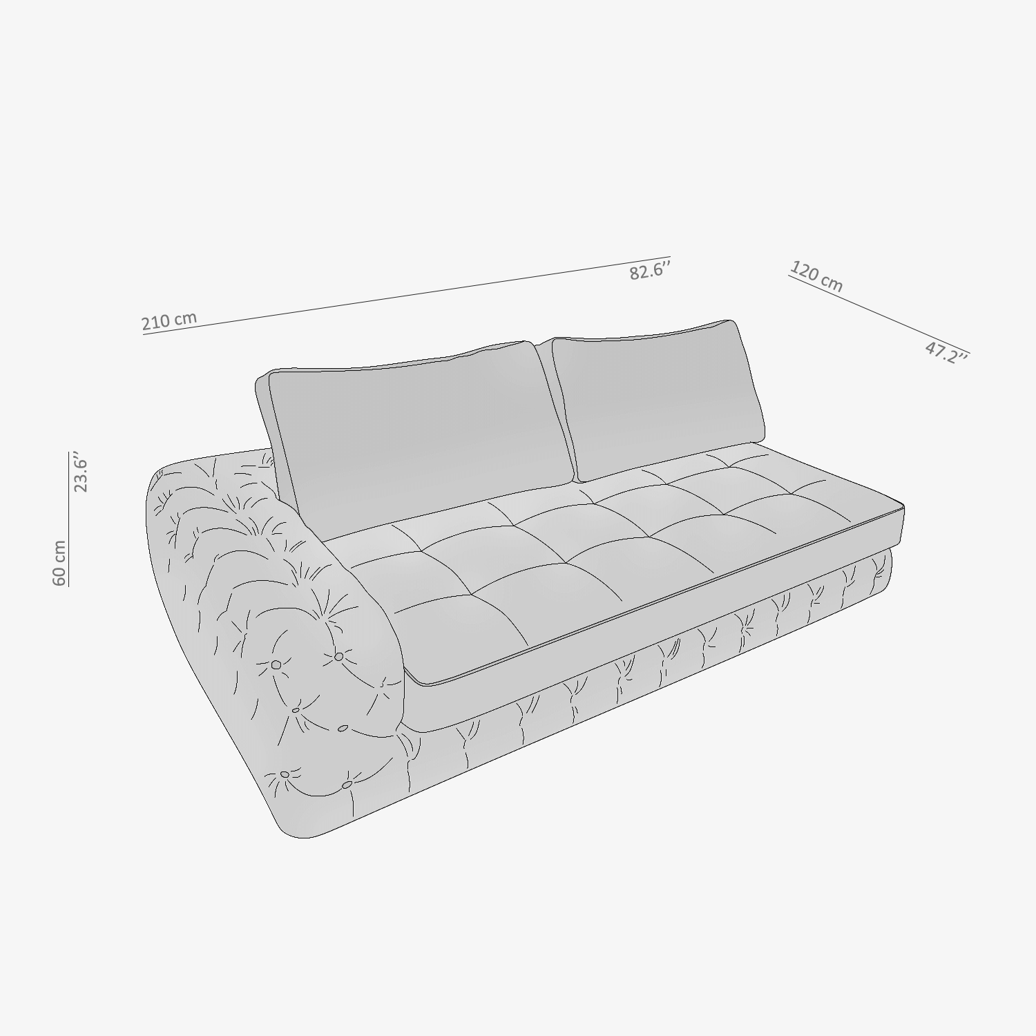 Gawain İkili Kanepe Sol Modül, güçlü ve karakteristik duruşunu detaylarında saklayan özel bir tasarım. Sırt ve kolçaklarında özenle işlenen kapitone dokusu, klasik işçiliğin izlerini taşırken, seyyar sırt minderleri ve düz oturumuyla rahatlığı ön planda tutuyor.