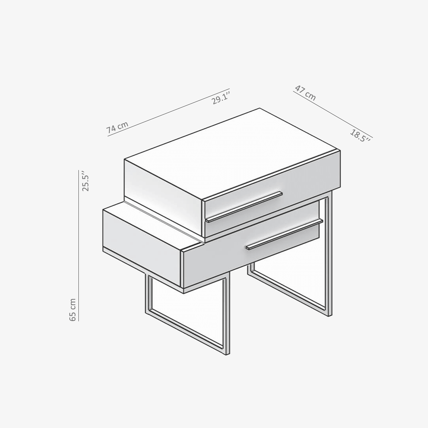 IRREGULAR komodin şık ceviz malzemesi ve geometrik formu ile serinin önemli tamamlayıcı unsurlarından biri olarak dikkat çekiyor. Yatak odanızın yükünü en kaliteli ve şık şekilde gizleyecek olan parçalar, alışılmışın dışındaki formu ile gündelik hayatınıza estetik bir dokunuşta bulunuyor. Zarafeti ile büyüleyen IRREGULAR serisinin en önemli tamamlayıcı parçaları komodinleri olarak karşımıza çıkıyor.