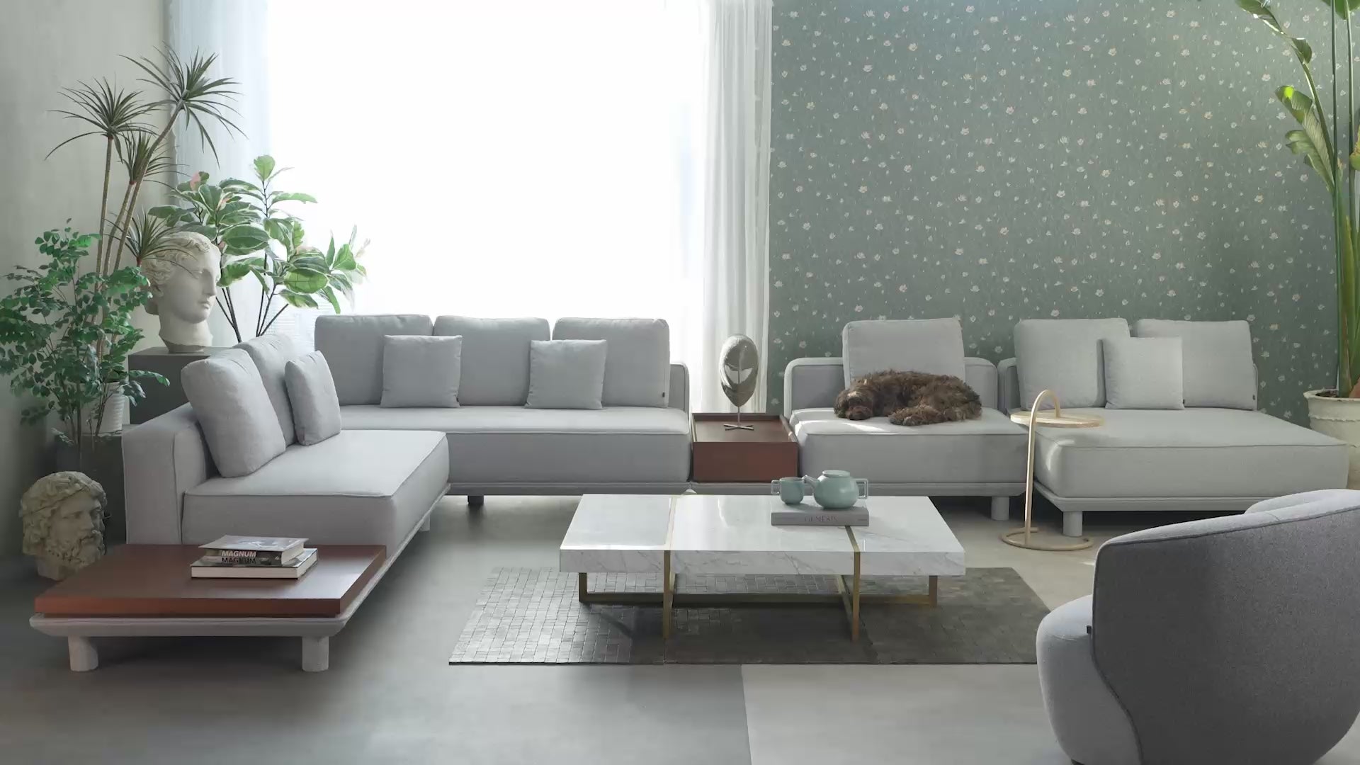 Momo Modüler Kanepe’nin bu geniş kombinasyonu, büyük mekanlar için ideal bir çözüm sunar. 500 cm genişliğinde ve 334 cm derinliğindeki bu varyasyon, konforu ve işlevselliği bir arada sunarak yaşam alanlarınıza modern bir dokunuş katar. Çekmeceli modül, ekstra depolama alanı sağlarken; sehpalı modül, pratik kullanımıyla günlük hayatınızı kolaylaştırır. Kolçaklı modül, rahat oturum ve destek sunarken; lounge modül, geniş ve rahat uzanma alanı sunarak uzun süreli konfor sağlar. Momo’nun esnek ve modüler yapısı sayesinde bu kombinasyon, daha geniş mekanlarda stil ve konforun mükemmel bir uyumunu sunar. Doğal malzemelerin sıcaklığı ve modern çizgileri estetik yaratırken, serinin tüm detayları yaşam alanınıza sofistike bir hava katar.