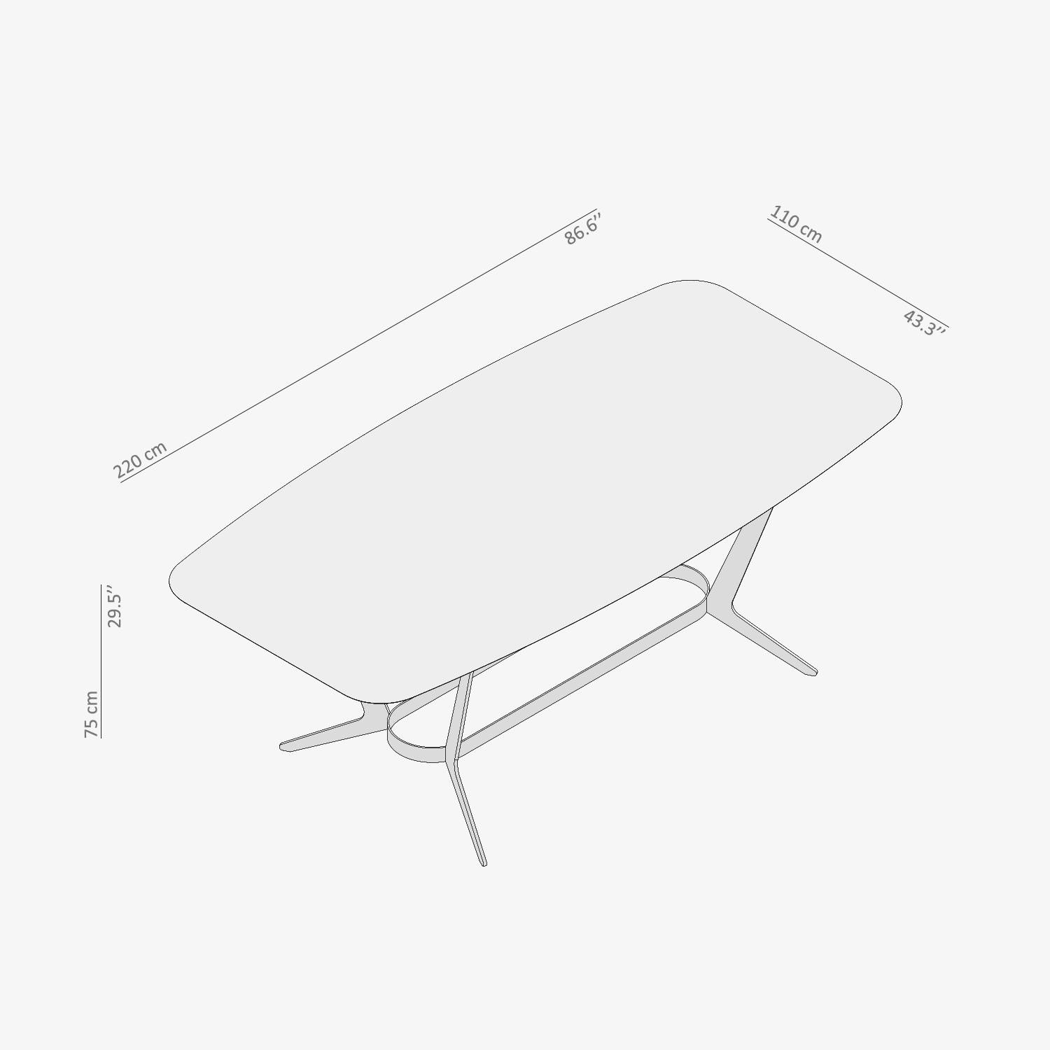 Nora Yemek Masası II, modern bir dokunuşla yemek alanınıza şıklık katar. 220 cm genişliği ve 110 cm derinliğiyle geniş bir yüzey sunarken, sade ve zarif tasarımı her tür iç mekana kolayca uyum sağlar. Mermer masa tablası, doğallığı ve şıklığı bir arada sunarken, metal ayaklar hem sağlamlık hem de modern bir görünüm sağlar. Yüksekliği 75 cm olan bu masa, altına rahatça kolçaklı sandalyeler yerleştirilebilecek şekildedir. Hem yemekler için hem de günlük kullanımda konforlu bir alan oluşturur. Bu masa, sadeliği ve fonksiyonu birleştirerek, yıllarca keyifle kullanabileceğiniz bir parça olmayı vaat eder. Hem evde hem de çalışma ortamlarında şık ve işlevsel bir çözüm sunar.