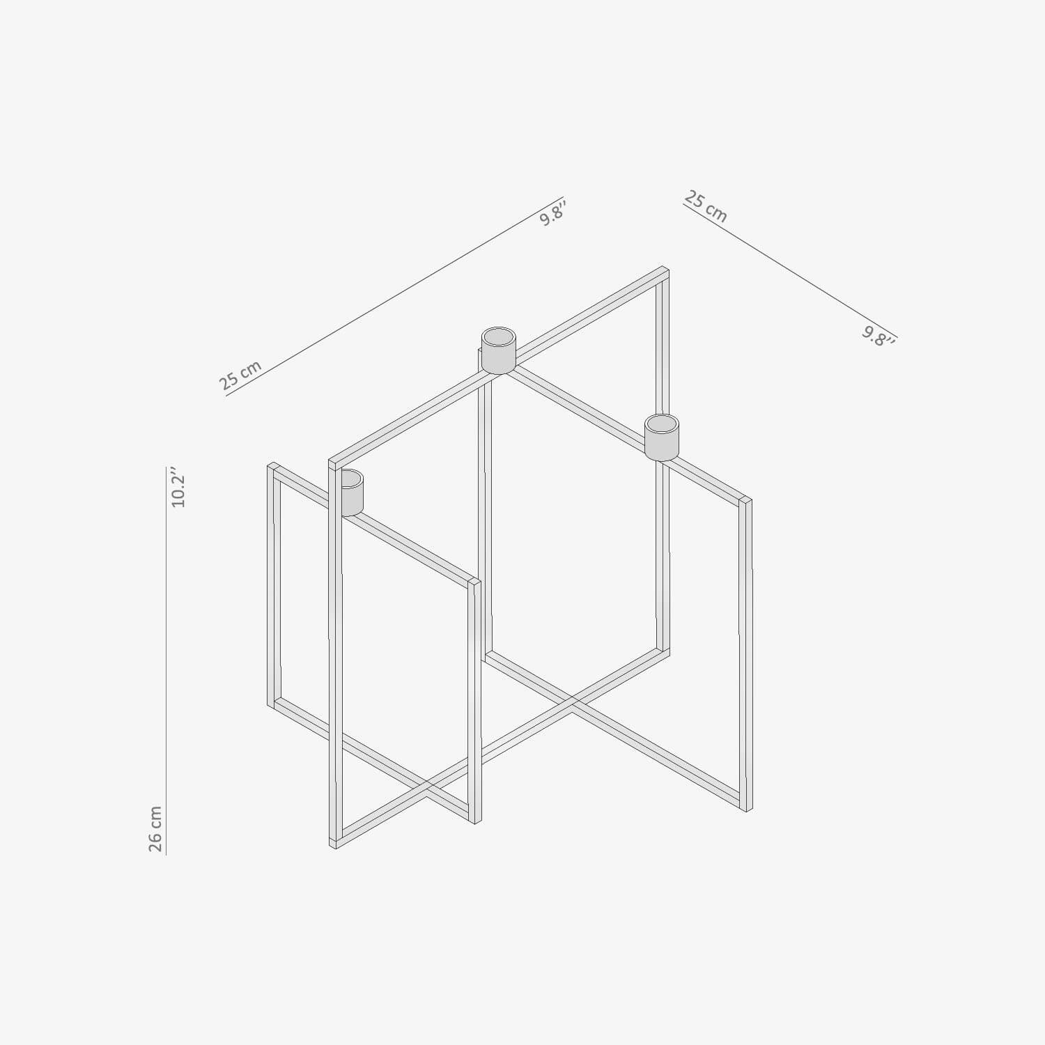 San ayaklı dekoratif şamdan mumluk, 25cm x 25cm genişliğinde ve 26cm yüksekliğinde olup, üç kollu şamdan yapısı ile 20mm'ye kadar olan mumlar ile birlikte kullanılabiliyor.