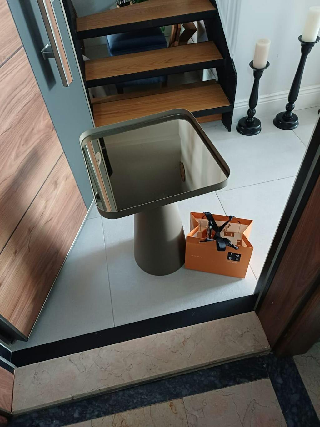 Sui Yan Sehpa, zarif ve modern tasarımıyla yaşam alanlarınıza sofistike bir dokunuş katıyor. Konik formdaki metal ayağı, dengeli ve güçlü bir duruş sergilerken, metal çerçeve içine yerleştirilmiş bronz ayna tablası ışığı yansıtarak mekâna derinlik ve şıklık kazandırıyor.