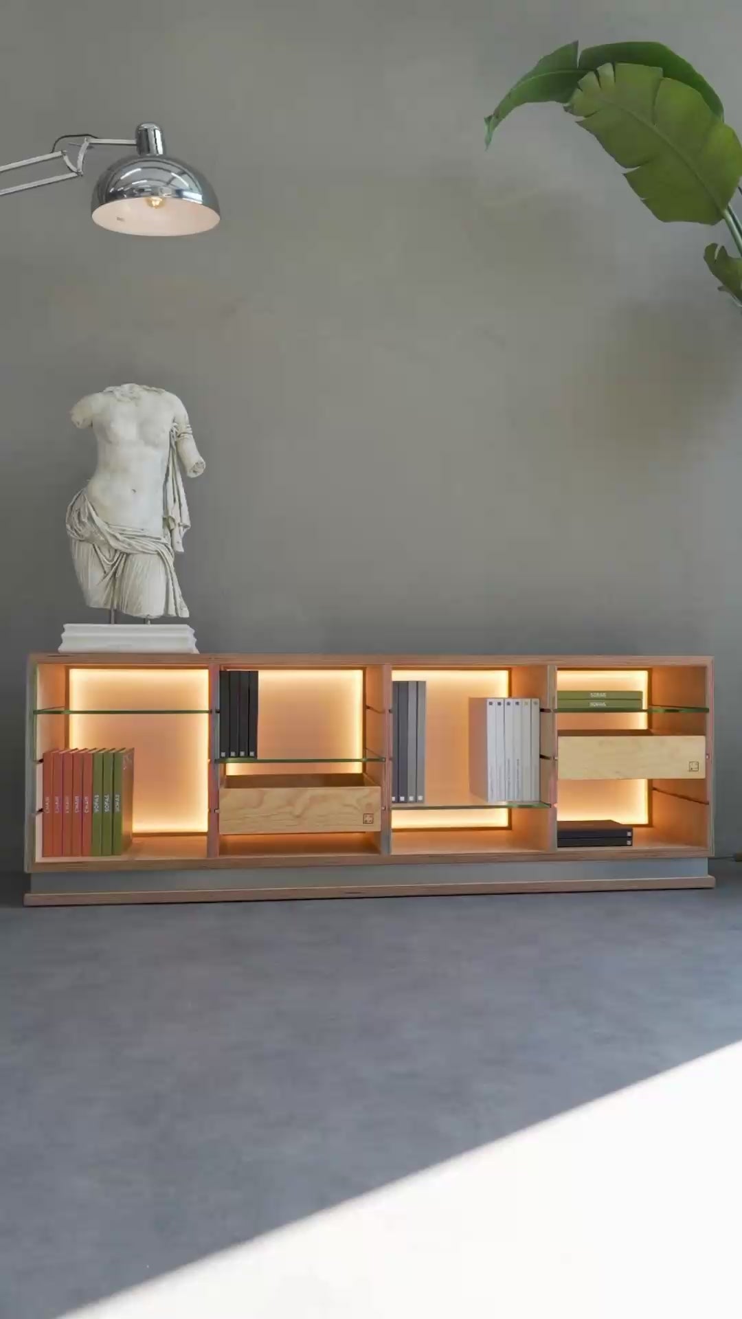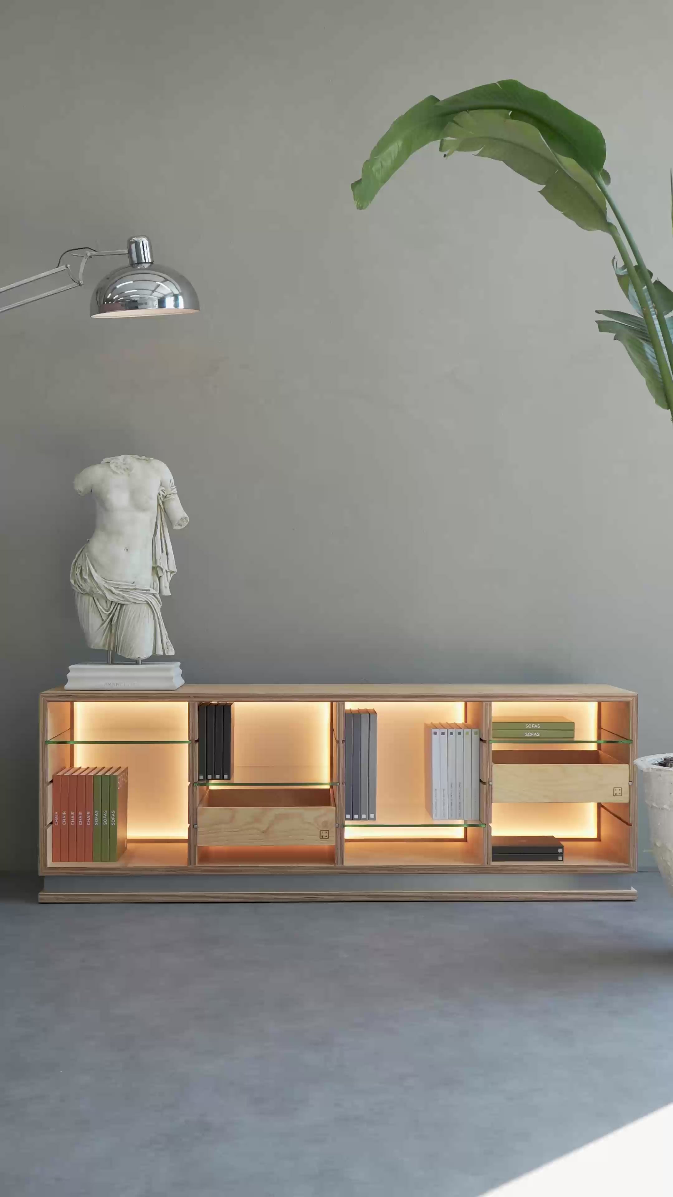 Yusu Konsol, ürünlerinizi rahatça sergileyip depolayabileceğiniz bir çözüm sunar. Dayanıklı kayın kontraplaktan yapılan Yusu Konsol, yaşam alanlarınıza uygun olarak kişiselleştirilebilir ölçü imkanı sunarken, çıkarılabilir cam rafları ve çekmeceleri sayesinde de esnek kullanım sağlar.
